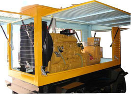靖宇柴油发电机组/移动柴油发电机组设计独具创新,机动性高、重心低、制动安全、制造精良、外形美观。 靖宇拖车车架采用槽梁焊接成框架结构,节点选择合理、强度高、刚性好;同时装有钢板弹簧悬架结构;拖车采用高度可调节插销式牵引架,适用于各种高度牵引车;采用圆形钢管焊接直通式车轴,结构紧凑,安全可靠;车架四角设有机械式支撑装置,配备惯性行车制动、驻车制动和脱离应急制动,确保机组在各种状况下的安全;车架前端设有支撑轮,具备承受机组垂直载荷的功能的同时还具备导向功能;整车配备转向和刹车指示灯,同时装有尾灯标准插头